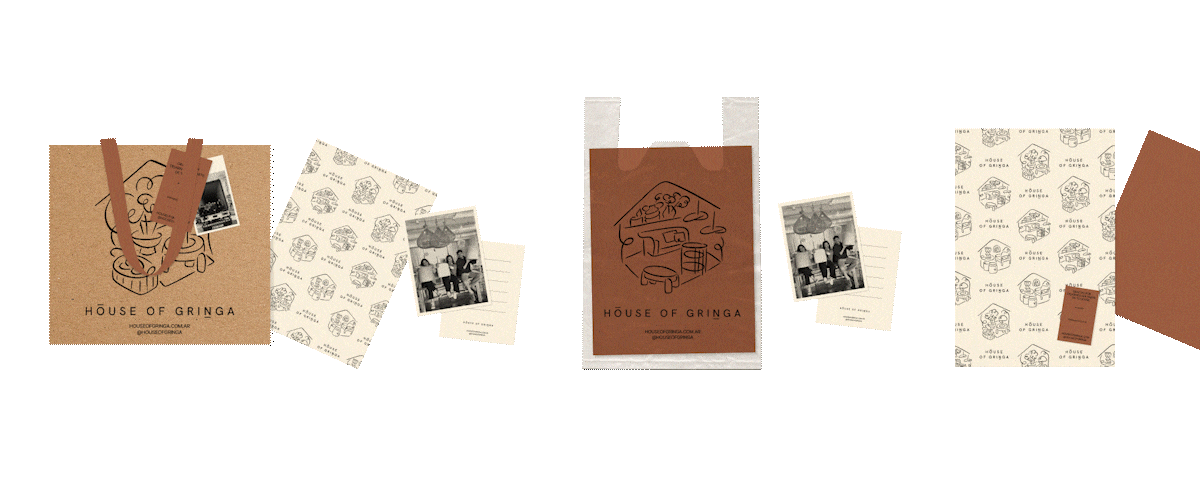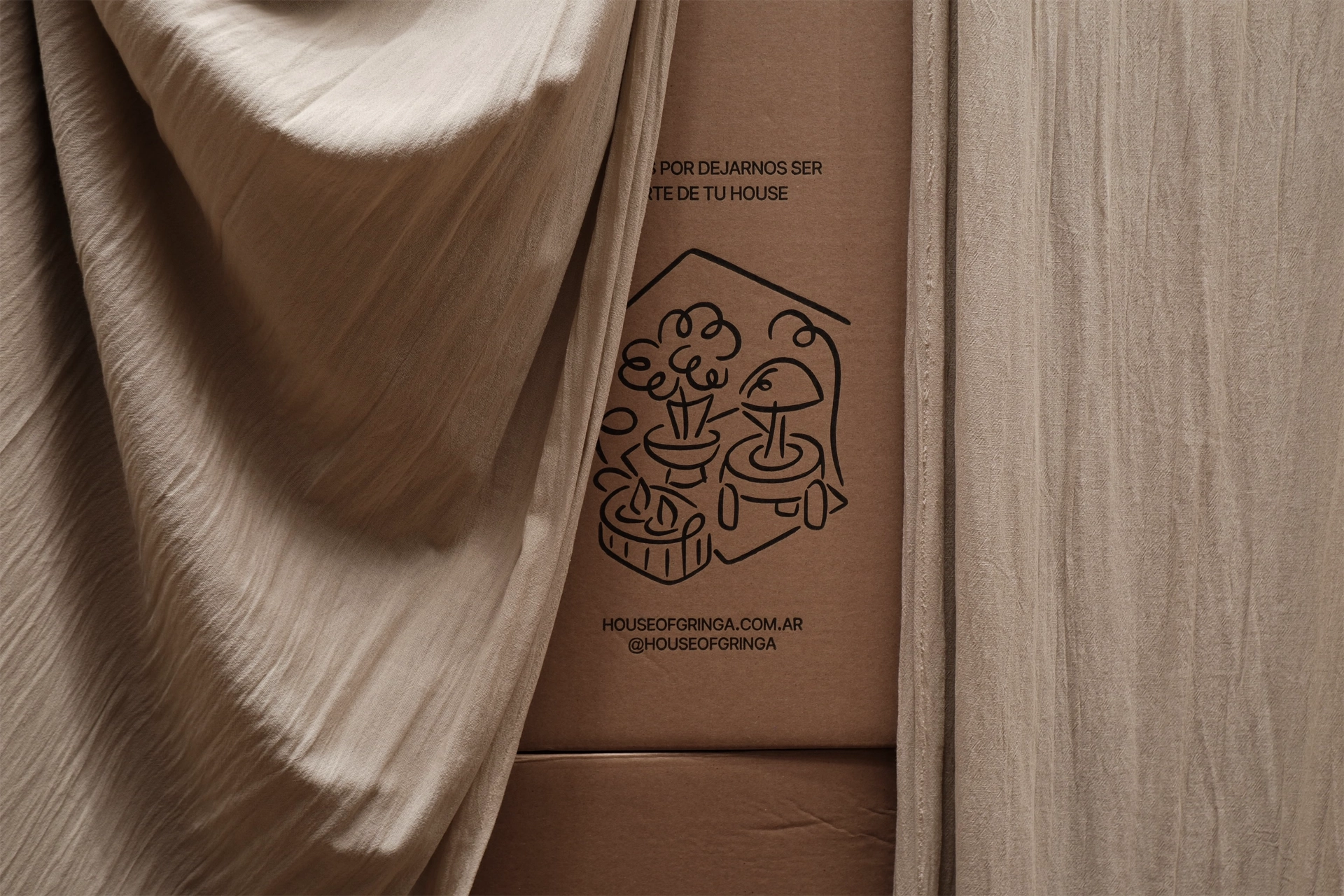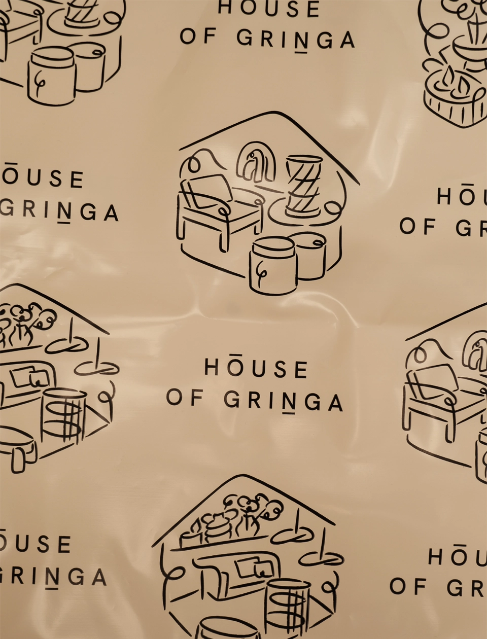 Illustration plays a central role within the identity. Through loose, gestural lines, symbolic houses are created, each one different from the other. Every illustration represents a way of living and a unique universe, bringing together objects, scenes and small details that reflect the world of House of Gringa.