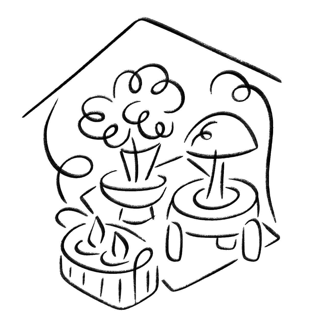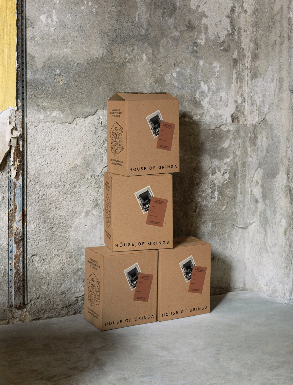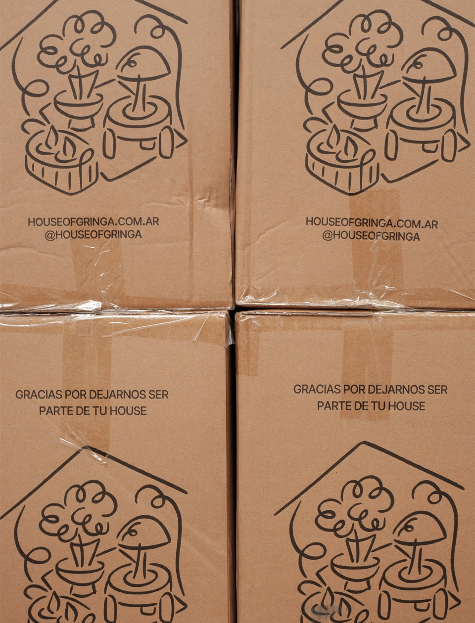 Illustration plays a central role within the identity. Through loose, gestural lines, symbolic houses are created, each one different from the other. Every illustration represents a way of living and a unique universe, bringing together objects, scenes and small details that reflect the world of House of Gringa.