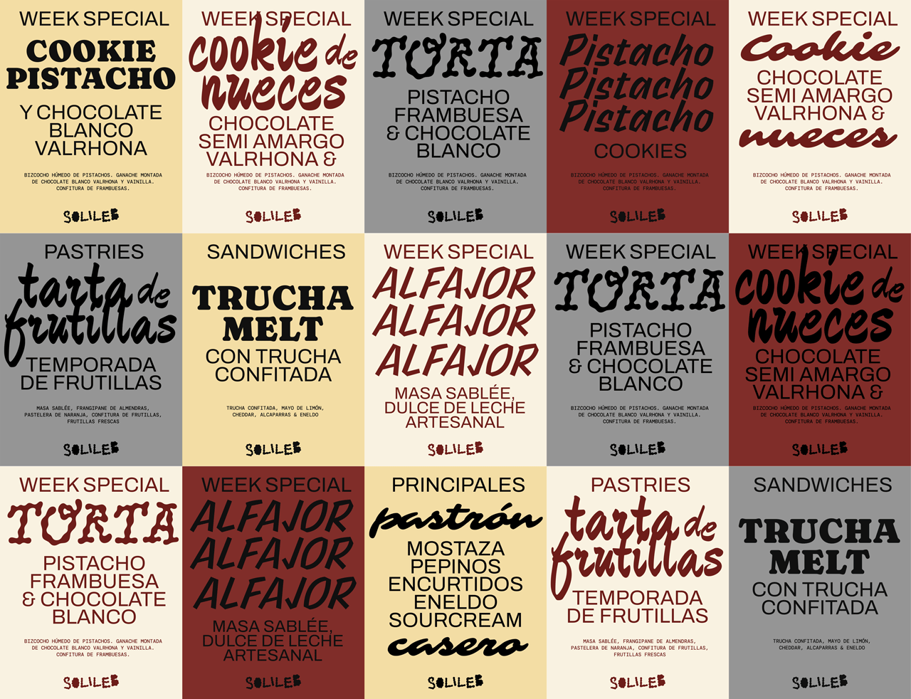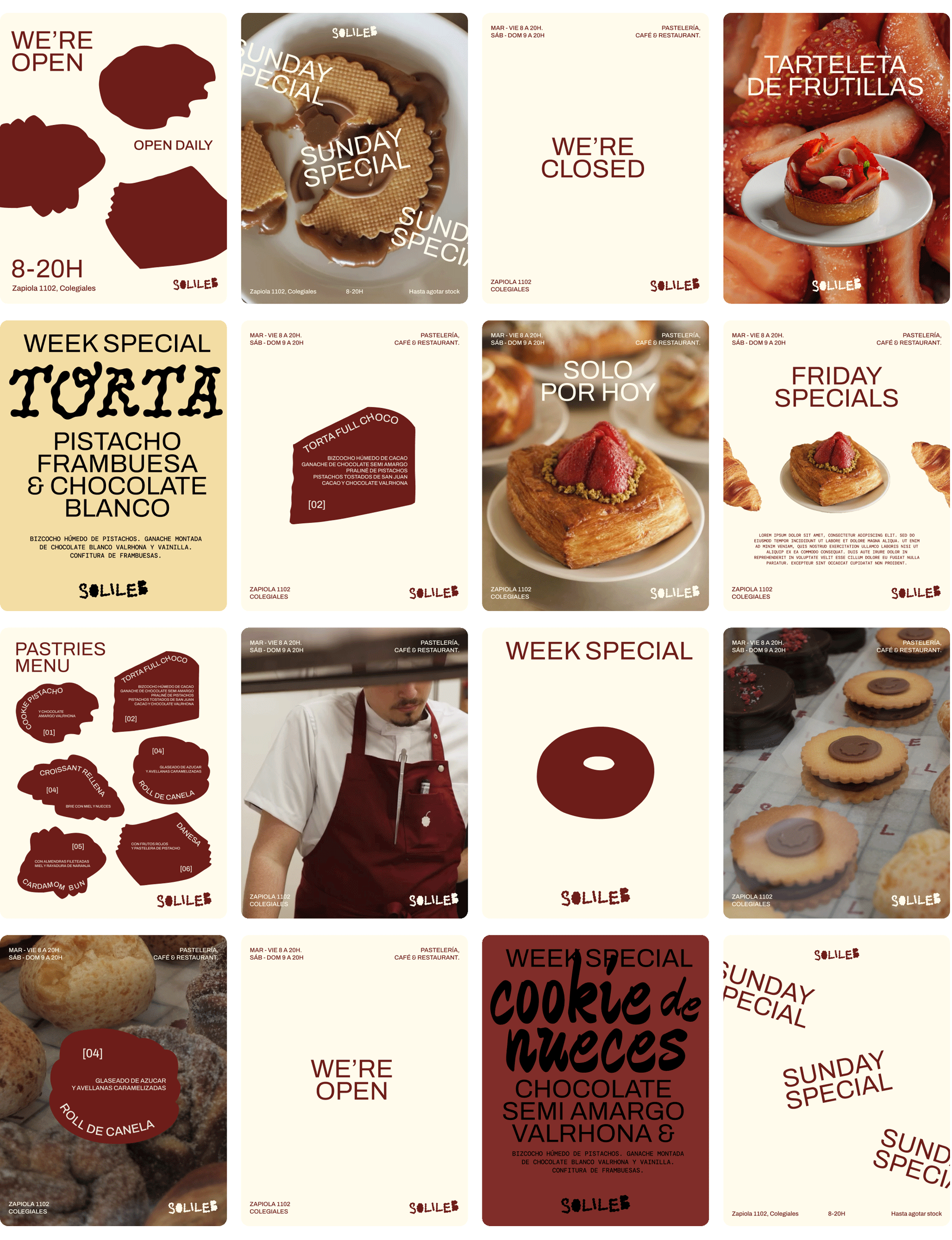 One of the most distinctive elements of the branding is its brand icon, created under the concept of “the fruit on top of the dessert”. Before opening the physical space, Melany, the owner of Solileb®, dedicated herself to making cakes and pastries that she sold online. The opening of the store was the result of many years of work and dedication, and the symbol seeks to reflect that very gesture: the moment of crowning the journey. It can be read as a cherry, a raspberry, or any fruit that tops a dessert, that final detail that completes and beautifies the whole.